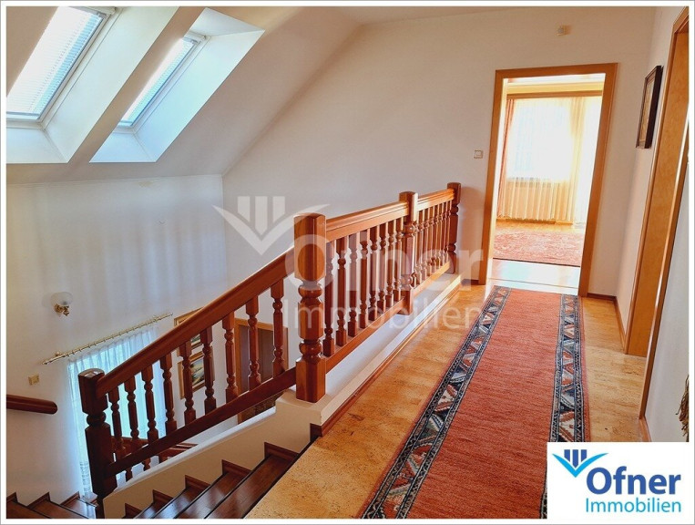 Über eine großzügige Stiege in der Diele gelangt man in die obere Etage mit einer Wohnfläche von ca. 121m² die als eigenständige Wohneinheit gestaltet werden kann. Hier befinden sich drei Schlafzimmer, ein Arbeitszimmer sowie ein Badezimmer. Eines der Schlafzimmer verfügt über alle Anschlüsse, die für die Errichtung einer Küche erforderlich sind. Ein zweites Zimmer lässt sich aufgrund seiner Größe problemlos in zwei Schlafräume teilen. So hätten Sie im Obergeschoß eine eigenständige Wohneinheit mit Küche, Badezimmer und drei Schlafzimmern. Ein Südwest-Balkon ergänzt das geräumige, helle Obergeschoß.