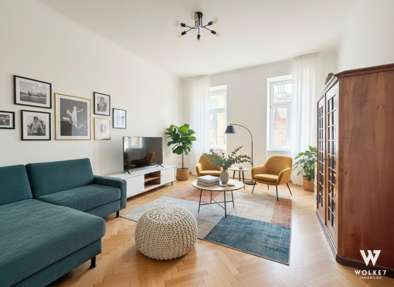 Diese ca. 53 m² große Altbauwohnung vereint klassischen Charme mit moderner Ausstattung. Die frisch sanierte Einheit besticht durch einen eleganten Fischgrät-Parkettboden, eine hochwertige neue Küche sowie ein stilvoll gestaltetes Badezimmer mit ebenerdiger Dusche.