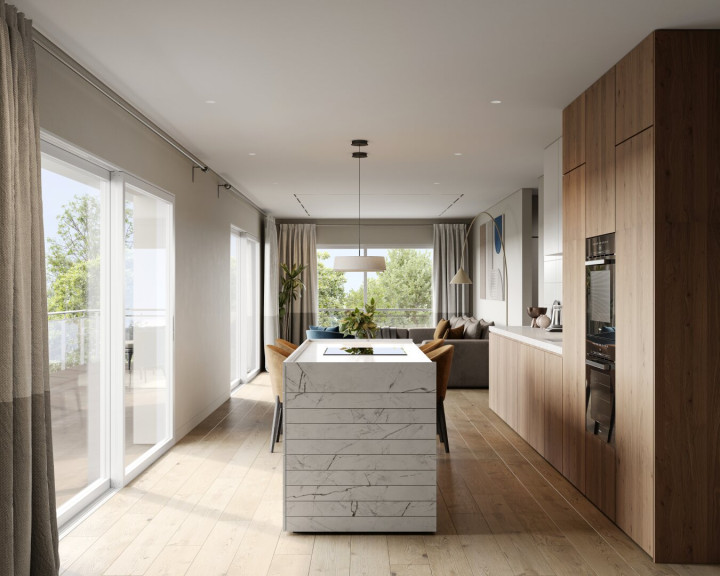 Alle Wohnungen sind barrierefrei zugänglich, verfügen über großzügige Terrassen und bieten moderne Annehmlichkeiten wie Fußbodenheizung und -kühlung, Video-Sprechanlagen sowie die Vorbereitung für Smart-Home-Lösungen.