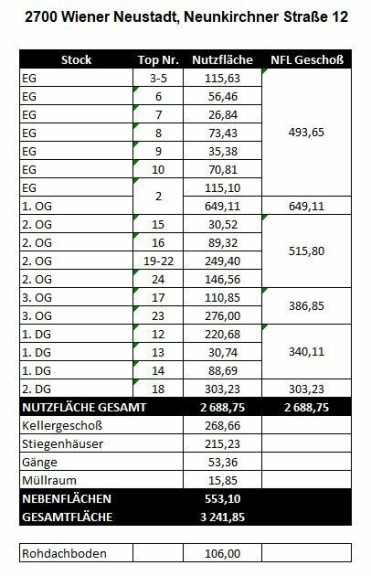 Die Nutzfläche aller Einheiten beträgt 2.688,75 m²