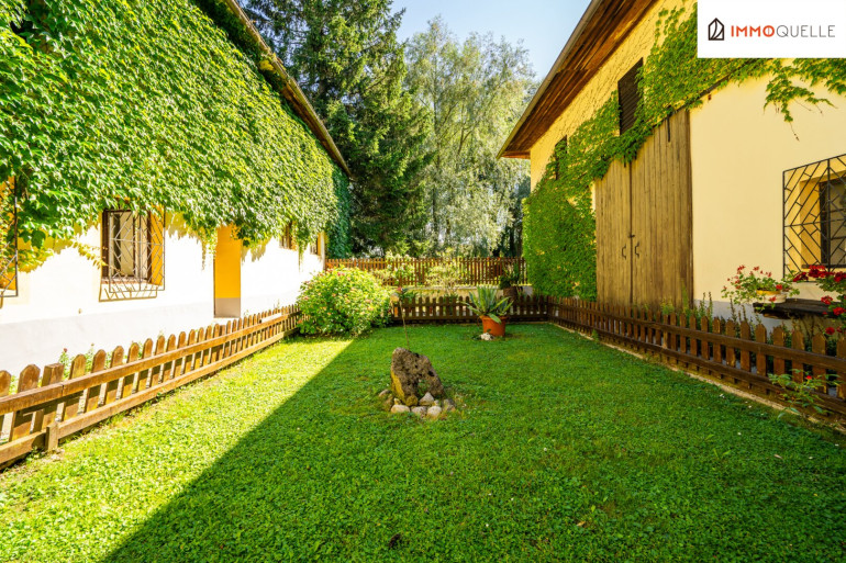 Das architektonische Zentrum bildet der charmante Innenhof, umschlossen von Wohnhaus, Stall und Nebengebäude. Direkt anschließend befindet sich ein liebevoll gepflegter Garten mit Badewiese – perfekt, um nach einem Sommertag ein erfrischendes Bad im angrenzenden Bach zu nehmen. Die absolute Alleinlage (nächster Nachbar ca. 300 m entfernt) schenkt eine Privatsphäre, wie sie nur noch selten zu finden ist.