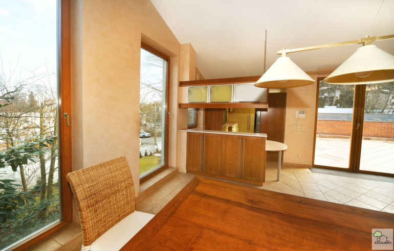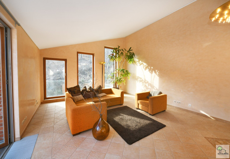 - Wohnen in den Baumwipfeln: Die weitläufige, komplett uneinsichtige Terrasse bietet einen spektakulären Blick ins Grüne – Ihr privater Rückzugsort inmitten der Natur.