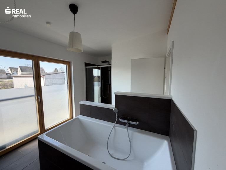 Fliesen, Parkett, Fußbodenheizung, Bad mit Fenster, Badewanne, Dusche