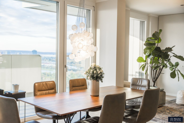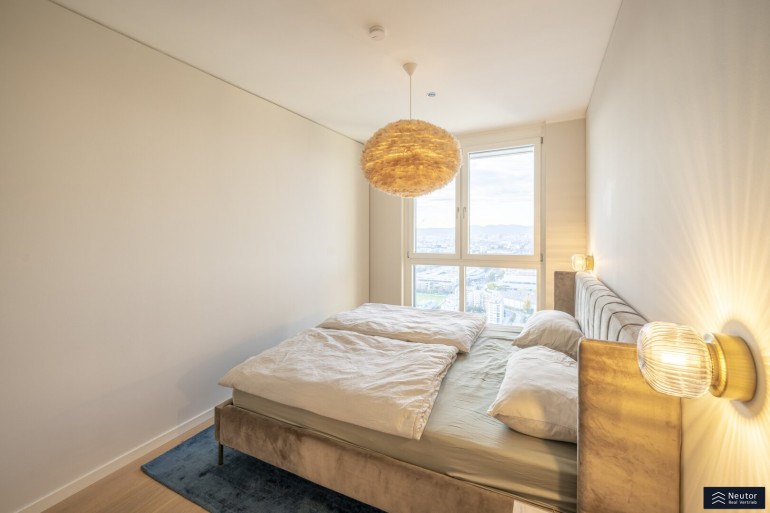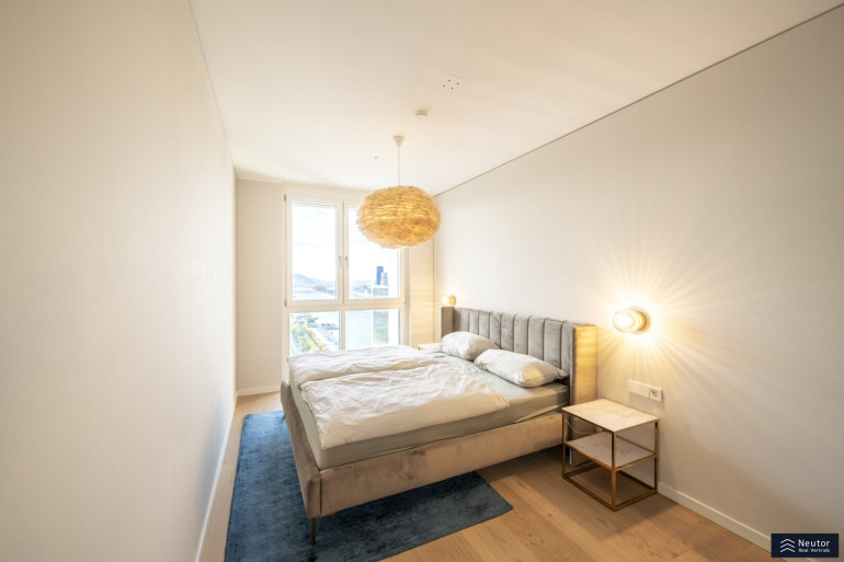 Willkommen in der atemberaubenden Luxusimmobilie "Marina Tower". Diese exklusive Wohnung befindet sich im 32. Stockwerk auf einer Höhe von 110 Metern und bietet Ihnen einen unvergleichlichen Fernblick über Wien. Mit hochwertigem Umbau, einem optionalen Tiefgaragenstellplatz, Deckenkühlung, Fußbodenheizung und edlem Parkettboden erleben Sie hier ein unvergleichliches Wohngefühl und ein außergewöhnliches Ambiente. Die ausgezeichnete Lage in der Nähe der U-Bahn-Station U2 Donaumarina ermöglicht Ihnen in wenigen Minuten die Innenstadt zu erreichen. Die 3 großzügig Räume mit dem Wohn-und Essbereich als Herzstück der Wohnung mit direktem Zugang zum Balkon bietet die perfekte Mischung aus Eleganz und Komfort. Ein zusätzlicher Abstellraum sorgt für Stauraum und Ordnung. Für Ihre Gäste steht ein separates WC mit Handwaschbecken zur Verfügung, welches absolute Privatsphäre garantiert. Die 2 Badezimmer dieser Immobilie sind wahre Highlights. Das erste Badezimmer beeindruckt mit einer begehbaren Dusche und einem Ankleidebereich, der direkt mit dem Schlafzimmer verbunden ist. Das zweite Badezimmer bietet eine luxuriöse Badewanne und eine weitere begehbare Dusche, ebenfalls mit direktem Zugang zum Schlafzimmer. Beide Badezimmer sind mit wunderschönen dunkelgrünen Fliesen ausgestattet, die Eleganz und Raffinesse ausstrahlen. Der großzügig gestaltete Wohn- und Essbereich besticht durch seine moderne Ausstattung. Sie gelangen vom Schlafzimmer sowie vom Wohn-und Essbereich auf den Balkon und die Loggia, von wo aus Sie einen spektakulären Blick auf die Donau und das Ernst-Happel-Stadion sowie über die Stadt genießen können. Solch grandiose Sonnenuntergänge haben Sie wahrscheinlich noch nie gesehen. Große Fensterfronten sorgen für viel Licht und schaffen eine lichtdurchflutete Atmosphäre. Die 2 Schlafzimmer sind mit edlem Parkettboden ausgelegt und bieten Ihnen einen ruhigen Rückzugsort für erholsamen Schlaf und pure Entspannung. Dank der Fußbodenheizung genießen Sie das ganze Jahr über angenehme Wärme und Behaglichkeit. Das Apartment befindet sich im 32. Stockwerk und bietet Ihnen einen atemberaubenden Ausblick über die Stadt. Hier erleben Sie das Gefühl von Freiheit und Exklusivität, das nur eine solch hochwertige Immobilie bieten kann.