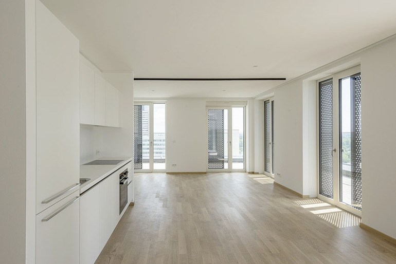 Die Wohnungen sind hochwertig, mit edlen Parkettböden, Tischlerküchen mit Miele-Geräten, bodentiefen Fenstern, Fußbodenheizung und Deckenkühlung ausgestattet.