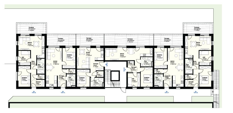 Vorraum – Abstellraum – Bad – WC – Wohnküche – Schlafzimmer – Loggia