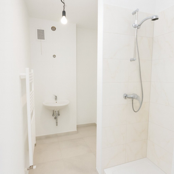Badezimmer mit Dusche und Waschmaschinenanschluss