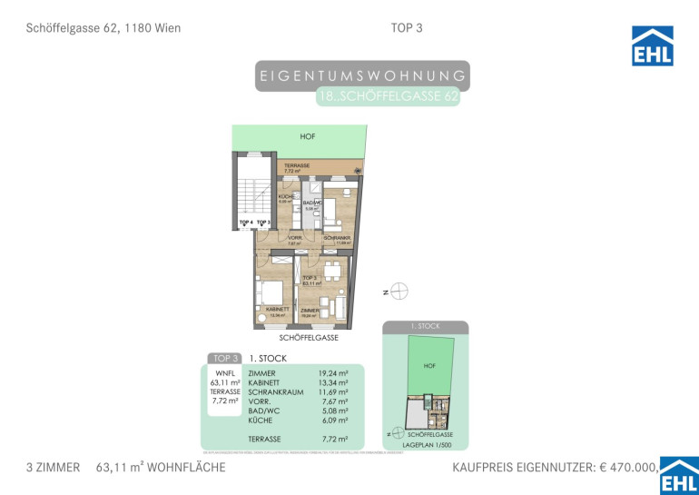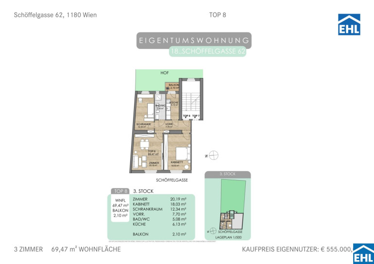 - Betriebskosten: EUR 2,50 /m² zzgl. USt.