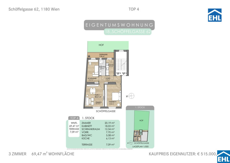 - Betriebskosten: EUR 2,50 /m² zzgl. USt.