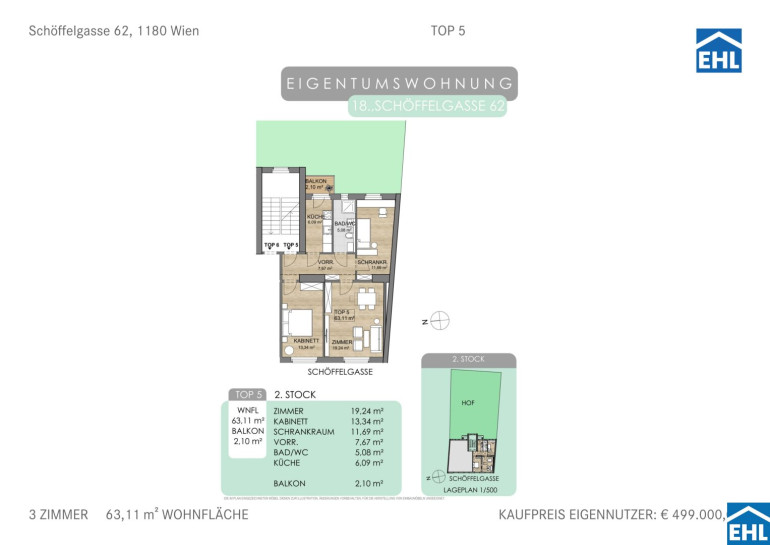 Mit einer großzügigen Fläche von 63,11 m² verteilt auf drei ruhige Zimmer, ist diese Wohnung der optimale Rückzugsort für Paare, kleine Familien oder Berufstätige, die das urbane Leben in vollen Zügen genießen möchten. Der Erstbezug garantiert Ihnen ein makelloses Wohnambiente, in dem Sie sich sofort wohlfühlen können.