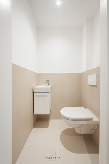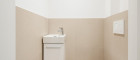Das WC ist separat und verfügt zusätzlich über ein Handwaschbecken – ebenfalls mit Fußbodenheizung.