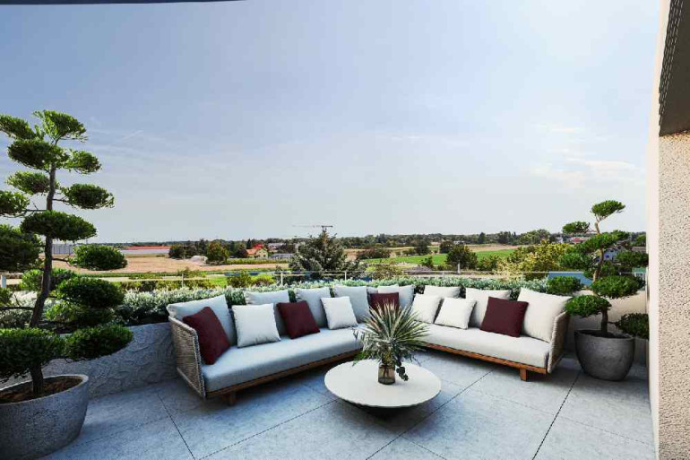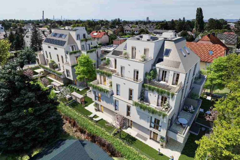 Das Projekt besticht durch eine ästhetisch anspruchsvolle, moderne Architektur, die sich harmonisch in die Umgebung einfügt. Hochwertige Materialien, Eichenparkett, großformatige Feinsteinfliesen, sowie Markenarmaturen in Bad und Küche garantieren ein exklusives Wohngefühl. Großzügige Fensterflächen schaffen helle, freundliche Räume und sorgen für ein angenehmes Wohnklima. Jede Einheit verfügt über mindestens eine Freifläche – ob Balkon, Terrasse, Loggia oder Garten – mit hochwertigen Betonplattenbelägen, punktueller Ambientebeleuchtung und frostsicherer Wasserentnahmestelle. Auch funktionale Aspekte wurden nicht vergessen: Fußbodenheizung, elektrische Handtuchheizkörper im Bad, dreifach verglaste Holz-Alu-Fenster mit elektrischem Sonnenschutz sowie vorbereitete Anschlüsse für TV, Internet, Telefon und Alarmanlagen (in EG-Wohnungen) sind Standard.