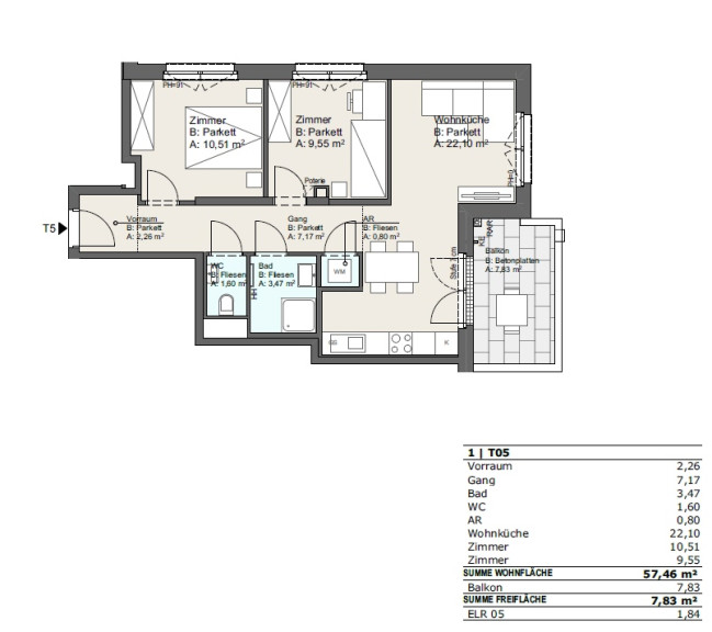 | Wohnfläche: | 57,46 m² |