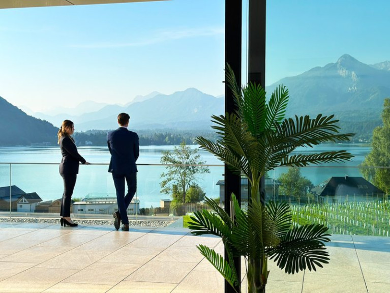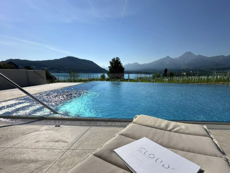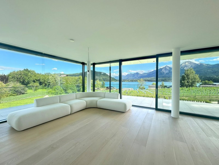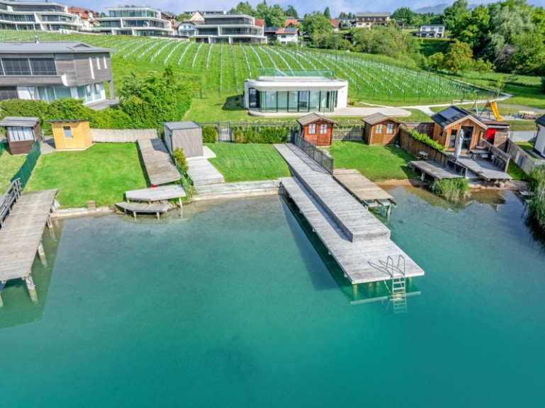 Diese sensationelle Terrassenwohnung bietet Ihnen und Ihrer Familie einen phantastischen See- und Karawankenblick. Rasch gehen Sie und Ihre Familienmitglieder zum eigenen Strand, dem eigenen Badehaus oder auch zum eigenen beheizten Pool.