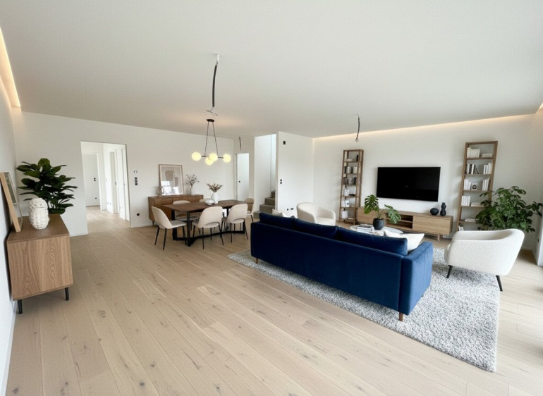 „Die dargestellten Möbel und Einrichtungsgegenstände dienen der besseren räumlichen Vorstellung und wurden mittels KI visualisiert. Sie sind nicht Bestandteil der tatsächlichen Ausstattung der Immobilie.“