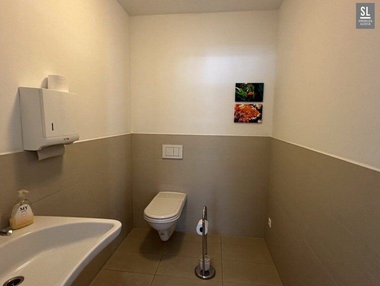 In Ihrem neuen, hellen Stadtdomizil gehen Sie vom Vorraum zum Empfang. Der großzügige Büro/Praxisraum grenzt an den sehr weitläufigen Süd-West Balkon mit durchlaufender Fensterfront (!). Vom Gang aus gelangen Sie in zwei weitere Räume und in die Teeküche, bzw. Sozialraum. Derzeit gibt es zwei WC Räume, eines davon hat breitere Maße und kann als Behinderten - WC fungieren.