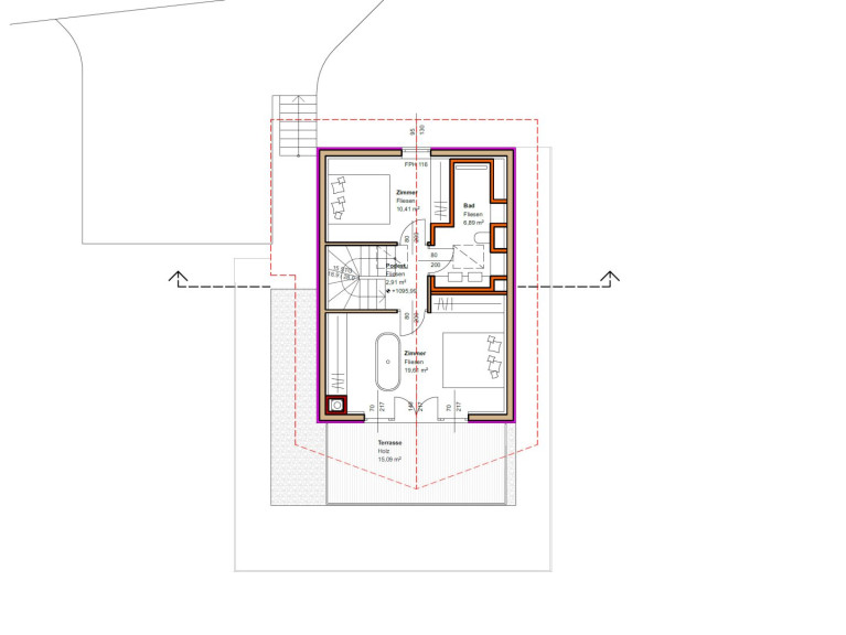 Das Obergeschoss besteht aus einem großen Badezimmer, einem Schlafzimmer mit ca. 10,4 m² und dem Hauptschlafzimmer (ca. 20m²) mit freistehender Badewanne. Vom Hauptschlafzimmer kommen Sie direkt auf die zweite südlich ausgerichtete Terrasse (ca. 15m²) von der aus Sie eine wunderbare Aussicht genießen. Die großen Fensterflächen machen dieses Areal zu einem einzigartigen Erlebnis sowohl bei Tag als auch bei Nacht.