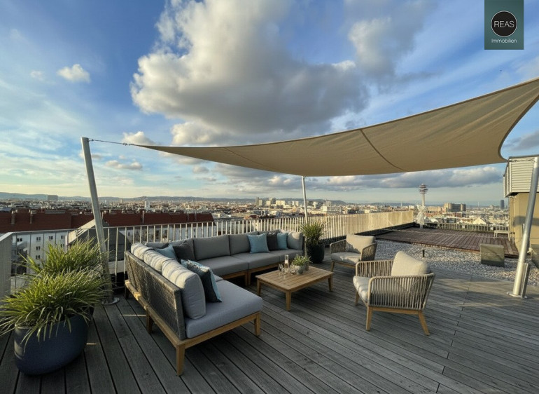 The View! Penthouse Loft mit Dachterrasse samt Wien-Panorama-Blick in der Brotfabrik Wien!