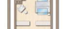 Innen finden sich Wohnzimmer, 1 ½ Schlafzimmer Küche, Bad, WC sowie ein Lagerraum.
