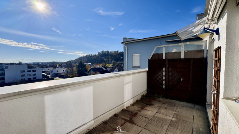 Die nordseitige Terrasse bietet angenehme Rückzugsfläche an heißen Tagen – perfekt für laue Sommerabende - mit Blick in Richtung Stadt Graz