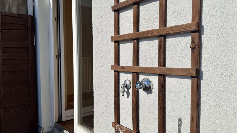 Die südseitige Terrasse ist ideal für Sonnenliebhaber und lädt zum Entspannen, Gärtnern oder Genießen ein. Wasseranschluss, Strom, Licht und eine Markise ist vorhanden.