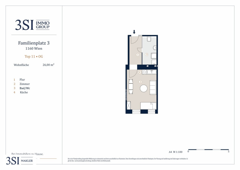 Diese teilmöblierte 1 Zimmer-Wohnung befindet sich im 1. Obergeschoß, verfügt über eine Wohnfläche von ca. 26m² und teilt sich wie folgt auf: