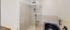 Badezimmer mit Fenster, Badewanne und Dusche