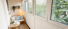 Ruhiges Schlafzimmer, ebenfalls hofseitig mit herrlichem Grünblick