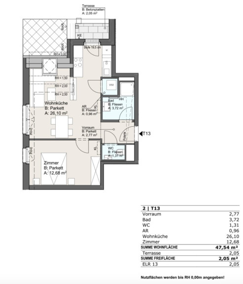 Top 13 | 2 Zimmer | ca. 48 m² + ca. 2 m² Terrasse
