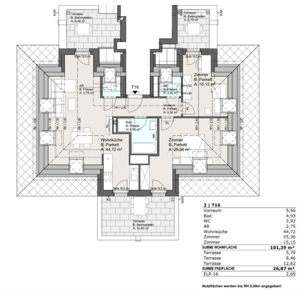 Top 16 | 3 Zimmer | ca. 101 m² + ca. 27 m² Terrassen