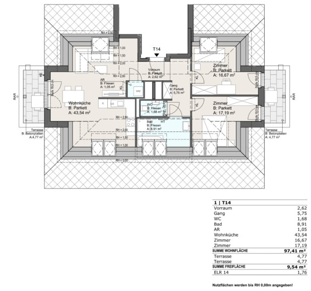 – Terrassen: ca. 4,77 m² + ca. 4,77 m²