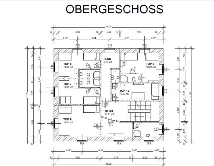 Das Zinshaus verfügt über eine Nutzfläche von ca. 331m² und gliedert sich im EG und OG in 8 Wohneinheiten.