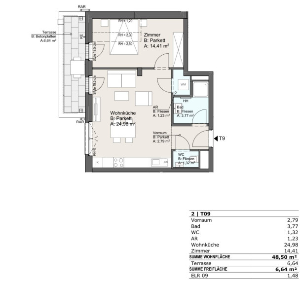 Top 09 | 2 Zimmer | ca. 49 m² + ca. 7 m² Terrasse