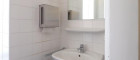 Das kleine Bad mit Dusche nimmt nur wenig Raum ein. Das WC ist extra.