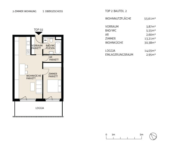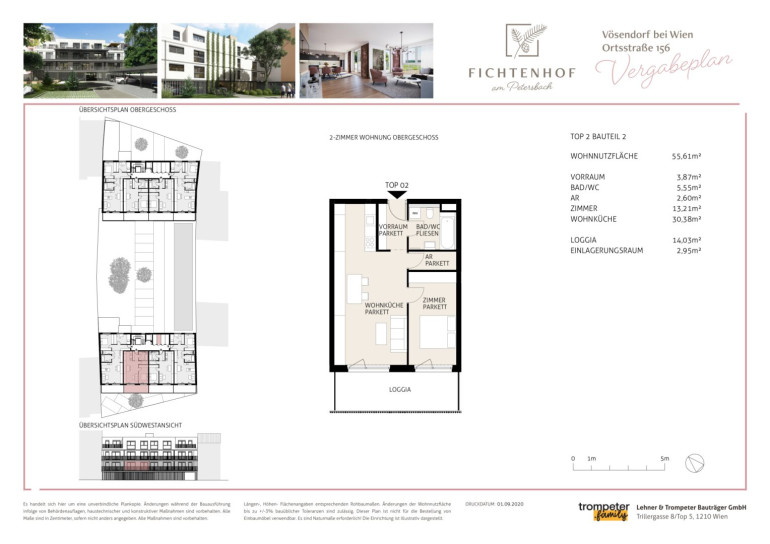 AKTION, inkl. Garagenplatz und Stellplatz! Herrlicher Fernblick, neue 2 Zimmer mit 14m² Loggia, Ruhelage, Erstbezug, Zentrum von Vösendorf