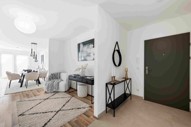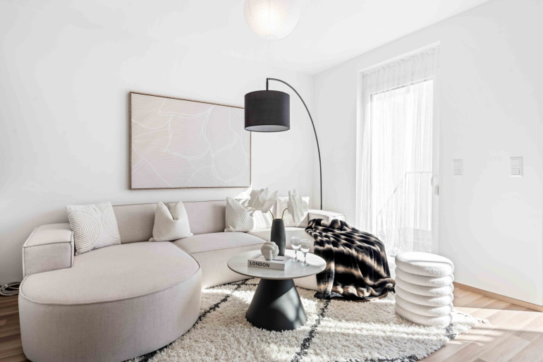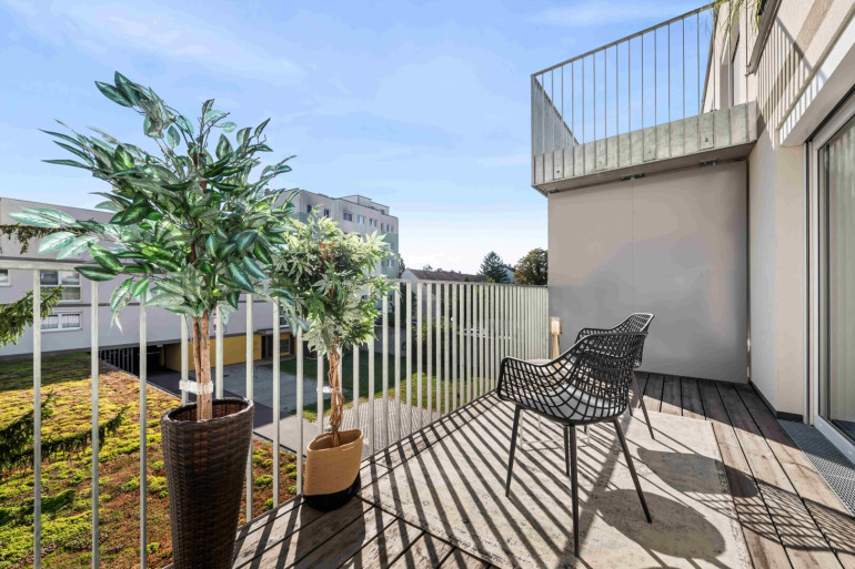 Verbindung zwischen Wohnraum und Außenbereich, der durch großzügige (12m² - 14m²) Balkone, Terrassen, Loggien