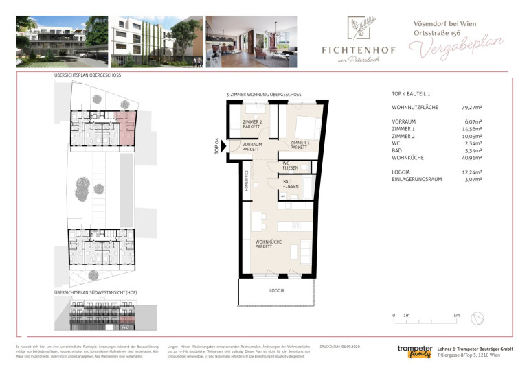AKTION, inkl. Garagenplatz u. Stellplatz, Erstbezug, günstige 3 Zi Wohnung, offener Grundriss, 12m² Loggia, Homeoffice, TOP öffentl. Anbindung, im Zentrum von Vösendorf