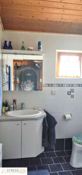 - Badezimmer mit Handwaschbecken, Dusche und WC