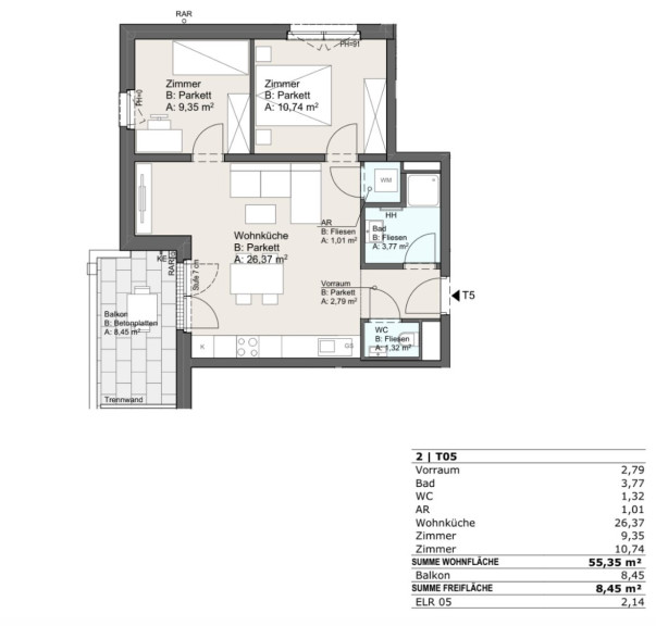 Top 05 | 3 Zimmer | ca. 55 m² + ca. 8 m² Balkon
