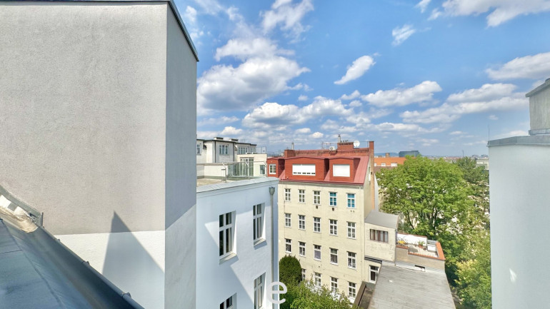 Die Terrasse mit Stadt- und Grünblick bietet einen geschützten Rückzugsort über den Dächern der Stadt – ideal für entspannte Stunden im Freien. Diese Dachgeschosswohnung bietet ein hohes Maß an Entfaltungspotenzial und eignet sich perfekt für all jene, die urbanes Wohnen mit großzügigem Freiraum und individueller Wohnqualität verbinden möchten.