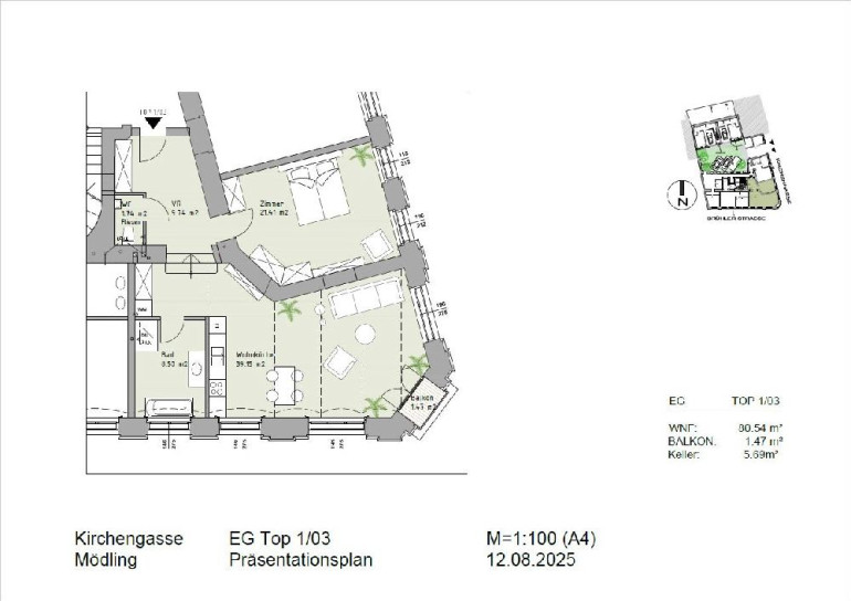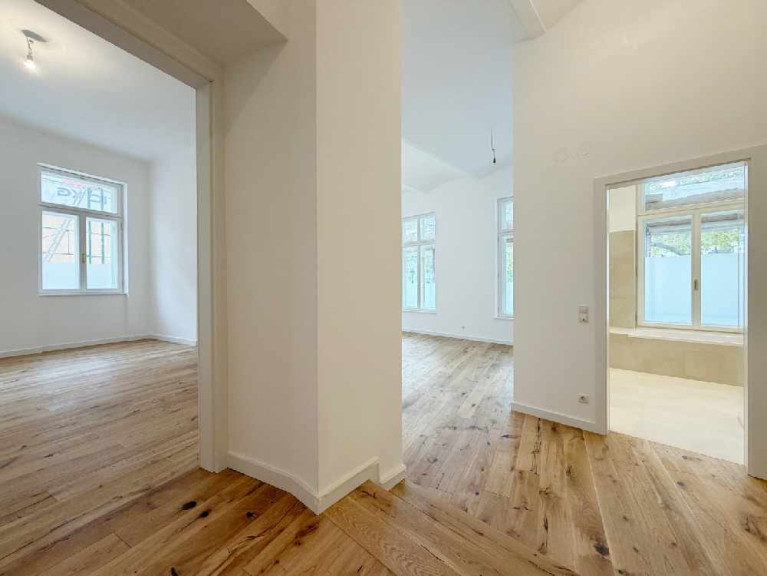 In einer der begehrtesten Lagen in Mödling entsteht ein einzigartiges Wohnensemble in einem denkmalgeschützten Gebäude aus dem Jahre 1895. Das imposante neobarocke Eckhaus, das direkt am Beginn der beliebten Fußgängerzone in Mödling liegt, wird umfassend saniert und revitalisiert – die historische Fassade aufwendig instandgesetzt und die hohen, originalgetreu nachgebauten Holzfenster verleihen dem Haus seinen unverwechselbaren Charme. Die Modernisierung erfolgt mit höchstem Anspruch: Alle 12 Wohnungen werden mit ausgewählten, hochwertigen Materialien sowie modernster Technik ausgestattet, um zeitgemäßen Wohnkomfort zu garantieren. Von den großzügigen 2 bis 4-Zimmer-Wohnungen mit Größen zwischen ca. 49 m² und ca. 140 m², sind noch 9 Einheiten verfügbar. Viele der Wohnungen verfügen über attraktive Außenflächen. Der teilweise begrünte Innenhof bietet eine ruhige Oase im Herzen der Stadt und wird mit fünf Stellplätzen ergänzt.Diese ca. 81 m² große Altbauwohnung besticht durch ihre vielseitige Nutzungsmöglichkeit und ihren unverwechselbaren Charakter. Ob als stilvolle Wohnung, charmantes Studio oder repräsentatives Büro/Ordination – Dank der Möglichkeit eines separaten Eingangs bietet sie ideale Voraussetzungen für unterschiedlichste Lebens- oder Arbeitskonzepte. Das Entrée – ein geräumiges Vorzimmer – lässt sich sowohl als Schrankraum als auch als einladender Empfangsbereich gestalten.