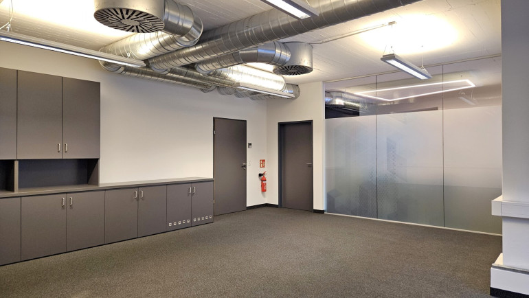 Die Bürofläche ist mit zeitgemäßen Materialien, stylisch und modern ausgestattet, welche sowohl Funktionalität und Stil vereinen. Ausreichende Anschlüsse für Internet und Telefon sind vorhanden.