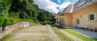 Vor der Villa gibt es genügend Platz für einige Autos. Auf der rechten Seite des Gebäudes gelangt man über einen Seiteneingang in die ca. 50 m² große Einliegerwohnung.