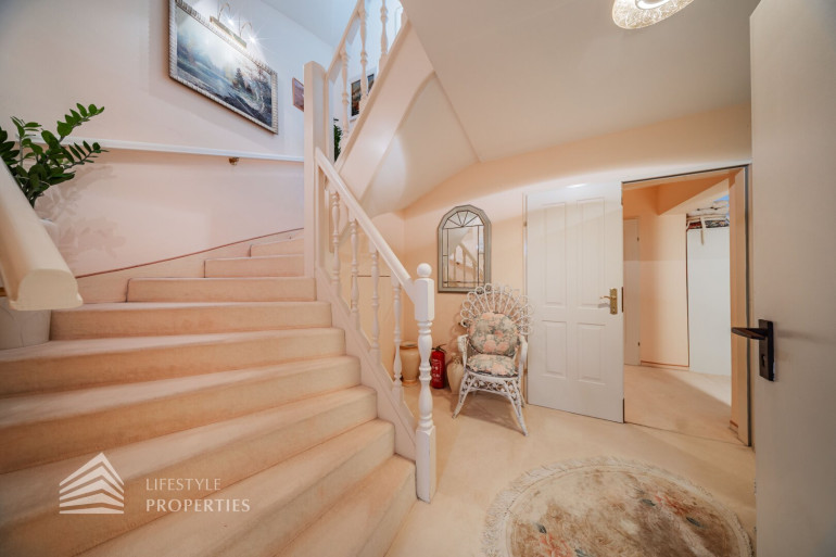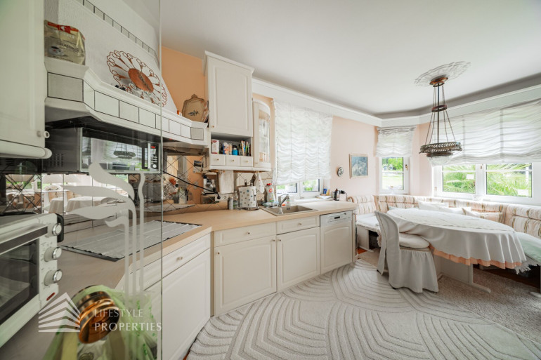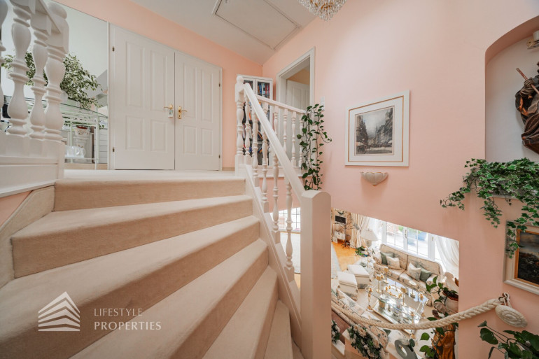 Die Villa hat eine Wohnfläche von ca. 306 m² und verfügt über zwei Eingänge, da man das Objekt eventuell in zwei Wohneinheiten aufteilen kann, wie an den Bildern erkennbar ist.