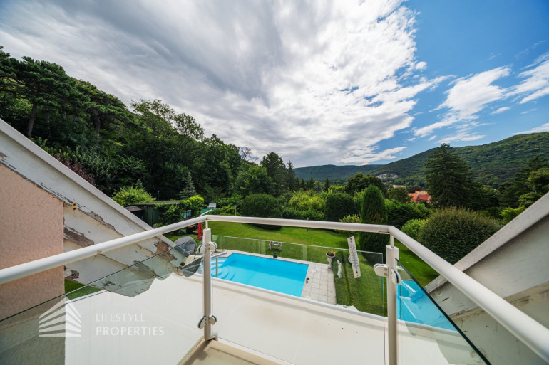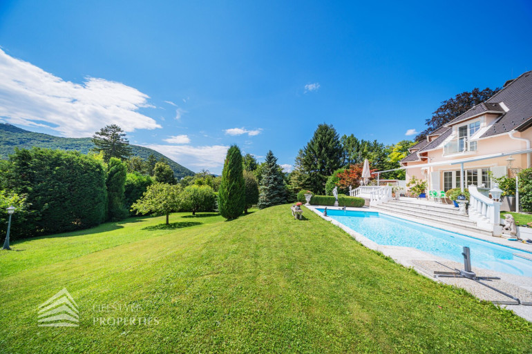 Zum Verkauf gelangt eine Villa mit einem ca. 4 250 m² großen Garten mit Swimmingpool in Bestlage in der Hinterbrühl.