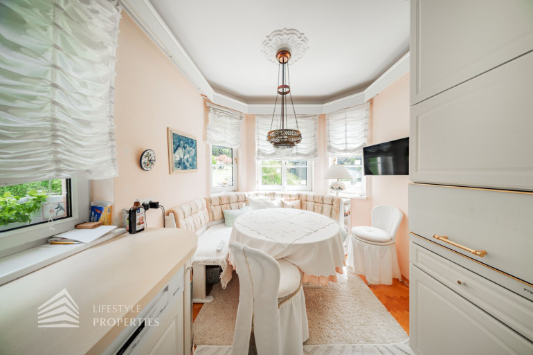 Bei einem lebenslangen Wohnrecht für die Verkäuferin kann man die Immobilie um einen Kaufpreis von 3,8 Mio. Euro erwerben.