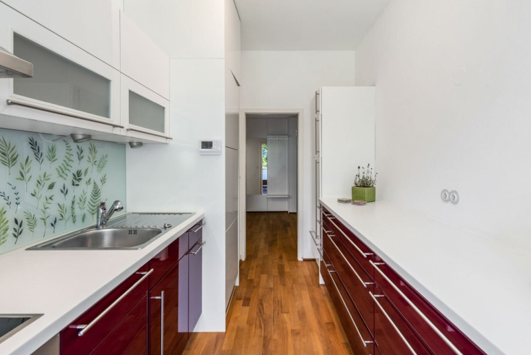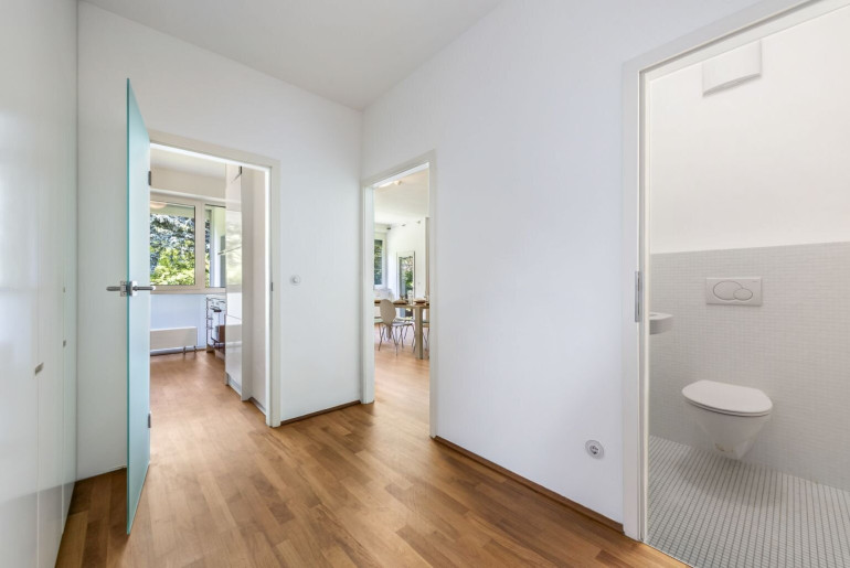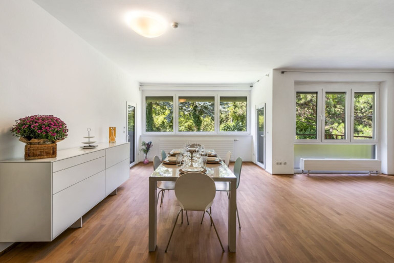 Die Wohnung wurde umfassend modernisiert und überzeugt durch eine stilvolle Ausstattung. Hochwertige Tischlermaßeinbauten, edles Parkett und moderne Fließen, elektrisch bedienbare Außenrollos sowie stylische Glastüren schaffen ein harmonisches Wohnambiente. Das Vorzimmer besticht durch die optimal konzipierten Tischlermaßschränke, die viel Stauraum bieten und schon beim Betreten der Wohnung einen harmonisches Wohngefühl schaffen. Die moderne Einbauküche ist nicht nur funktional, sondern auch ein echter Blickfang, der beim Kochen Freude bereitet. Das Badezimmer ist mit einer Badewanne sowie einer Dusche ausgestattet, sodass Sie sich nach einem langen Tag in der Stadt perfekt entspannen können. Loggia und Balkon bieten zu jeder Jahreszeit Erholung pur mit Grünblick. Die Alarmanlage verleiht ihnen Sicherheit. Ein Kellerabteil und ein praktischer Garagenplatz im Haus runden das außergewöhnliche Wohnangebot ab. Kurz gesagt: ein perfekter Ort zum Leben!