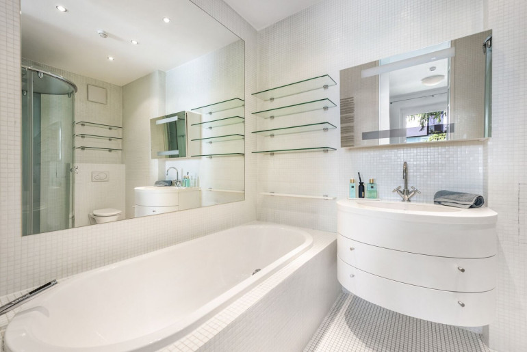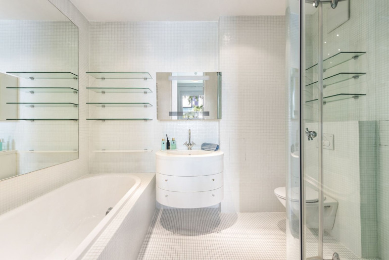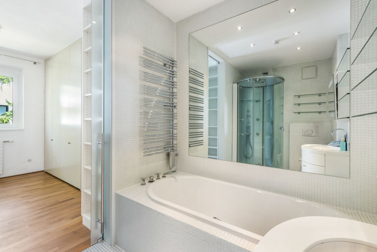 - Badewanne und große Runddusche mit Rainshower