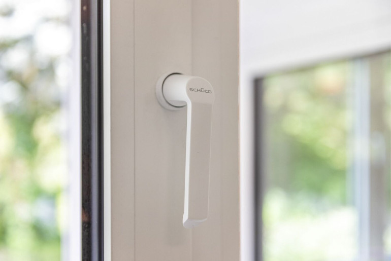 - Moderne Fenster der Marke Schüco mit elektrisch bedienbaren Außenrollos
