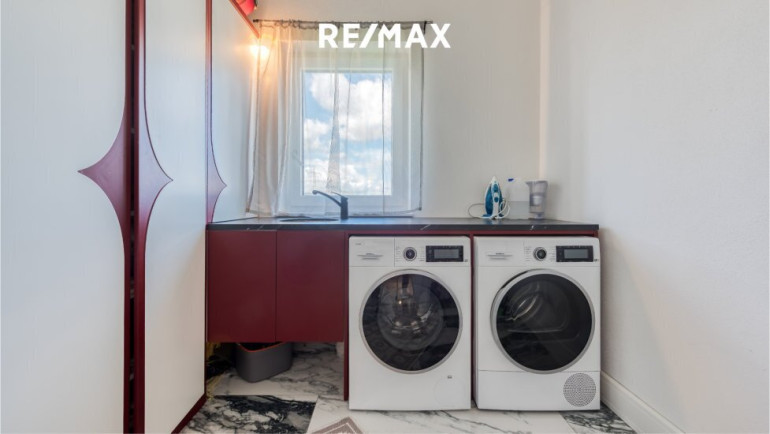 Praktische Annehmlichkeiten wie zwei Doppelgaragen und weitere Parkplätze bieten Ihnen die Möglichkeit, Ihr Fahrzeug sicher und komfortabel abzustellen. Der Wasch- und Trockenraum sorgt dafür, dass Sie Ihre Wäsche jederzeit bequem erledigen können.